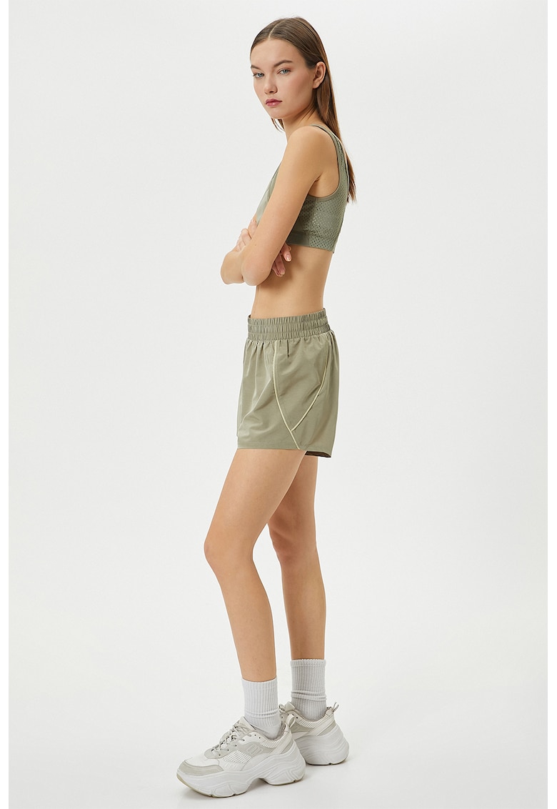 Caracteristici Culoare: verde feriga Stil: casual Material: sintetic Imprimeu: uni Croiala: regular fit Lungime: scurti Talie: medie Detalii: talie elastica Sistem inchidere: fara inchidere Compozitie Exterior: 100% poliester Captuseala: 100% poliester Info model Modelul poarta un produs de marimea S. Marimi model: 178 cm inaltime