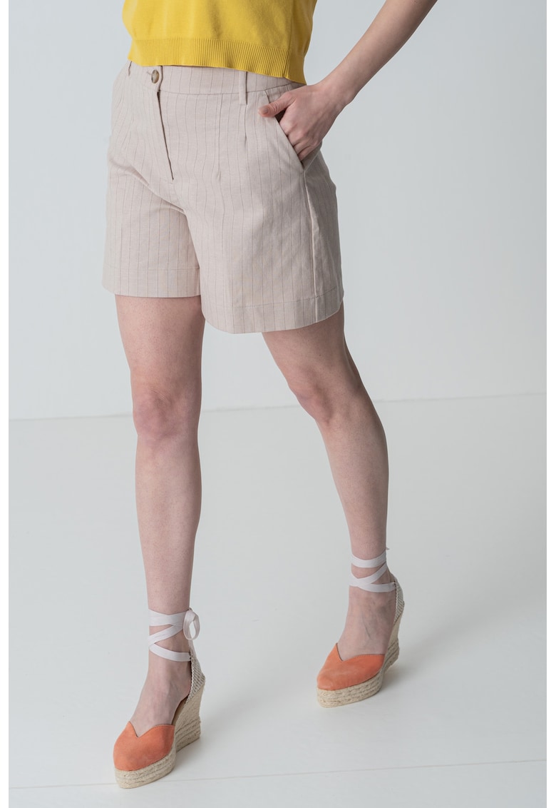 - in Imprimeu: uni Croiala: regular fit Lungime: scurti Talie: inalta Buzunare: 2 oblice laterale Compozitie Exterior: 86% bumbac