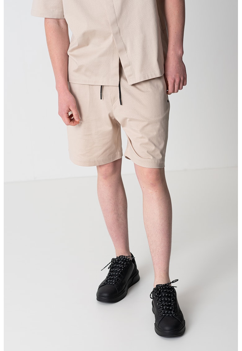 Caracteristici Culoare: bej Imprimeu: uni Material: bumbac Stil: casual Croiala: regular fit Talie: medie Buzunare: 2 laterale Lungime: scurti Detalii: snur pentru ajustare Sistem inchidere: fara inchidere Compozitie Exterior: 100% bumbac Info model Modelul poarta un produs de marimea M. Marimi model: 189 cm inaltime
