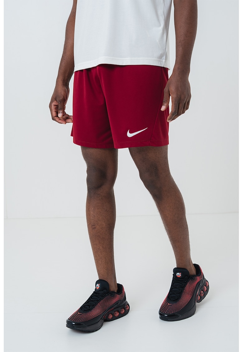 Caracteristici generale Tip produs: pantaloni Tip: scurti Stil: talie medie Culoare: visiniu Material: poliester Tehnologie material: dri fit Imprimeu: uni Sport: fotbal Detalii: talie elastica Detalii material Exterior: 100% poliester Info model Modelul poarta un produs de marimea M. Marimi model: 184 cm inaltime