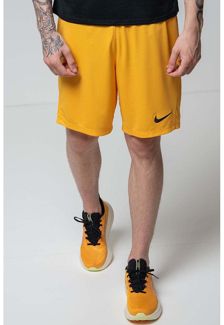 Caracteristici generale Tip produs: pantaloni Tip: scurti Stil: talie medie Culoare: galben sofran Material: poliester Tehnologie material: dri fit Imprimeu: logo Sport: fotbal Detalii material Exterior: 100% poliester Info model Modelul poarta un produs de marimea M. Marimi model: 188 cm inaltime