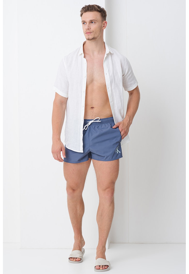 Caracteristici Tip produs: pantaloni scurti Culoare: albastru prafuit Material: poliester Imprimeu: logo Buzunare: laterale Compozitie Exterior: 100% poliester Info model Modelul poarta un produs de marimea M. Marimi model: 191 cm inaltime