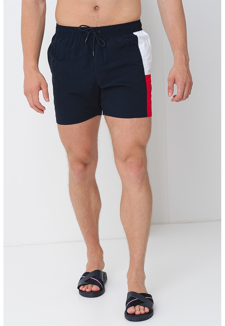 - bleumarin Material: poliamida Imprimeu: logo Buzunare: 2 laterale Detalii: snur pentru ajustare in talie Compozitie Exterior: 100% poliamida reciclata Info model Modelul poarta un produs de marimea M. Marimi model: 191 cm inaltime