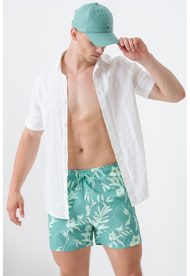 Caracteristici Tip produs: pantaloni scurti Culoare: verde deschis Material: sintetic Imprimeu: floral Buzunare: in cusaturile laterale