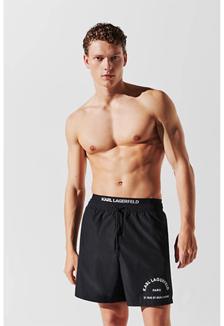 Caracteristici Tip produs: pantaloni scurti Culoare: negru Material: sintetic Imprimeu: logo Buzunare: in cusaturile laterale