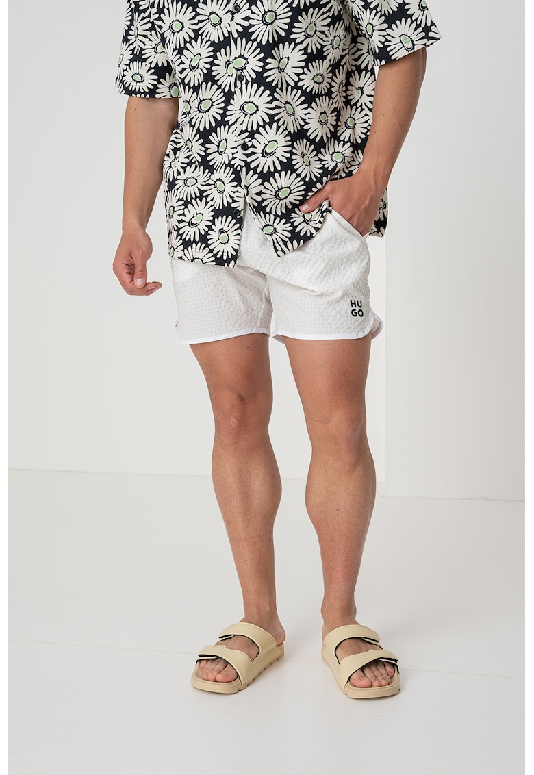 Caracteristici Tip produs: pantaloni scurti Culoare: alb fildes Material: sintetic Imprimeu: logo Buzunare: laterale