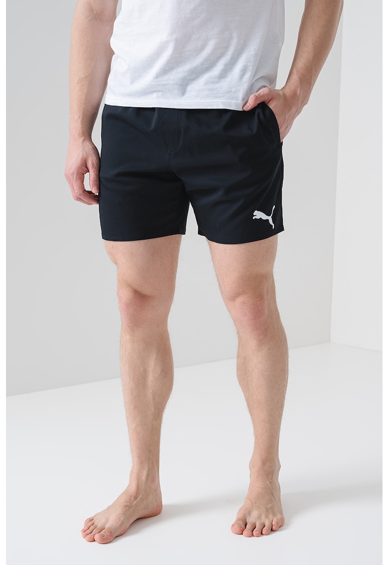 Caracteristici Tip produs: pantaloni scurti Culoare: negru Material: poliester Imprimeu: logo Buzunare: buzunare laterale Talie: elastica Compozitie Exterior: 100% poliester Info model Modelul poarta un produs de marimea M. Marimi model: 191 cm inaltime