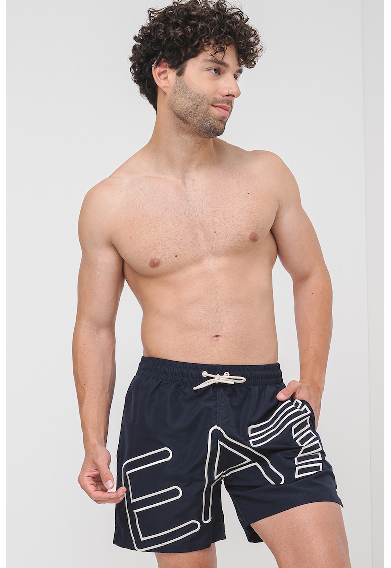 Caracteristici Tip produs: pantaloni scurti Culoare: bleumarin Material: sintetic Imprimeu: logo Buzunare: in cusaturile laterale
