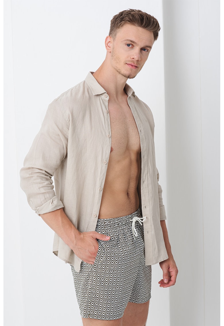 - verde feriga Material: poliamida Imprimeu: geometric Buzunare: buzunare laterale Talie: talie ajustabila cu snur Compozitie Exterior: 100% poliamida reciclata Info model Modelul poarta un produs de marimea M. Marimi model: 191 cm inaltime