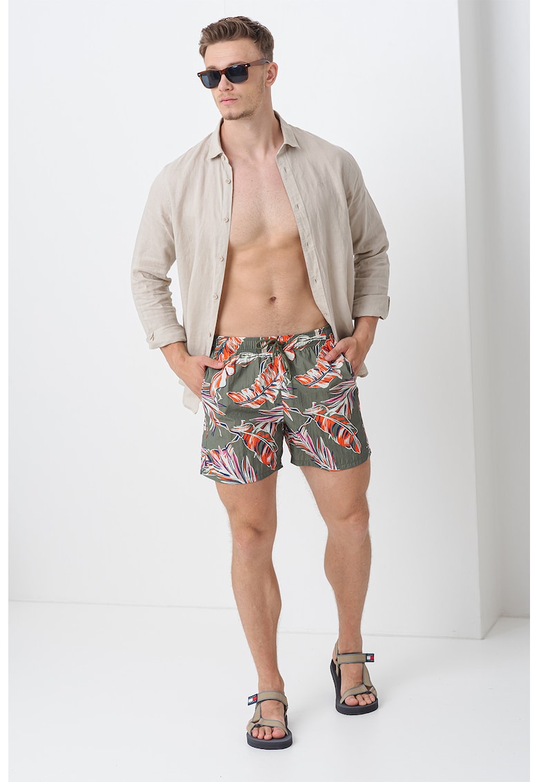 - verde feriga Material: poliamida Imprimeu: grafic Buzunare: buzunare laterale Talie: talie ajustabila cu snur Compozitie Exterior: 100% poliamida reciclata Info model Modelul poarta un produs de marimea M. Marimi model: 191 cm inaltime