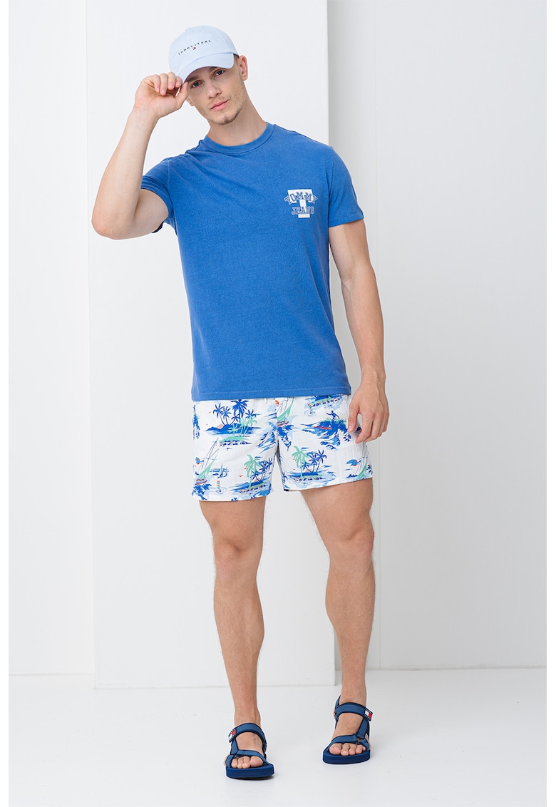 - albastru deschis Material: poliamida Imprimeu: tropical Buzunare: buzunare laterale Talie: talie ajustabila cu snur Compozitie Exterior: 100% poliamida reciclata Info model Modelul poarta un produs de marimea M. Marimi model: 191 cm inaltime