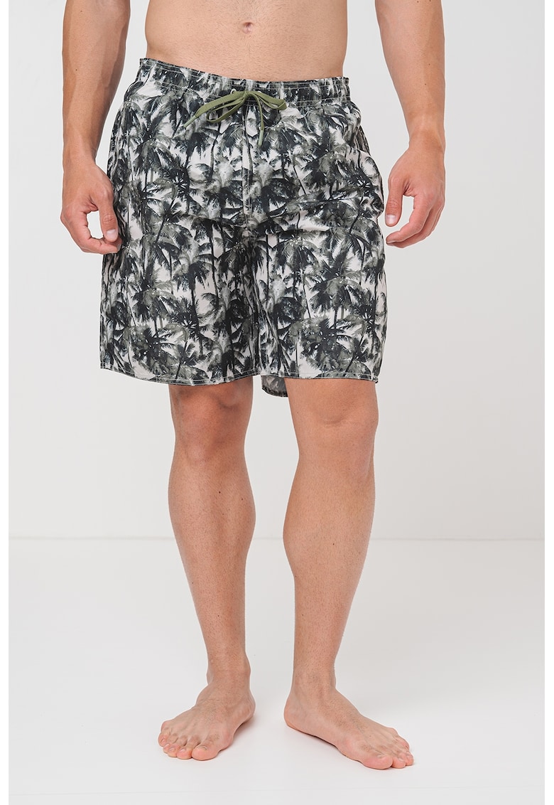 Caracteristici Tip produs: pantaloni scurti Culoare: verde feriga Material: poliester Imprimeu: grafic Buzunare: buzunare laterale Talie: talie ajustabila cu snur Compozitie Exterior: 100% poliester Info model Modelul poarta un produs de marimea M. Marimi model: 179 cm inaltime