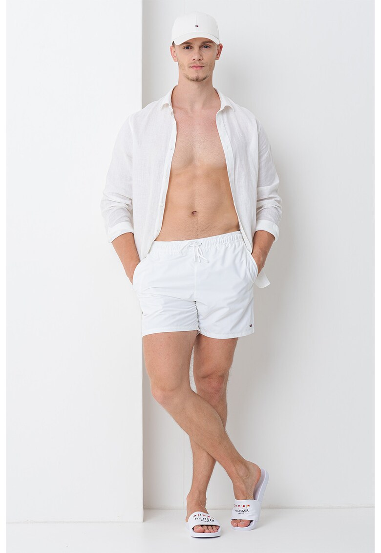 Caracteristici Tip produs: pantaloni scurti Culoare: alb optic Material: poliester Imprimeu: uni Buzunare: 2 laterale Detalii: snur pentru ajustare in talie Compozitie Exterior: 100% poliester reciclat Info model Modelul poarta un produs de marimea M. Marimi model: 191 cm inaltime