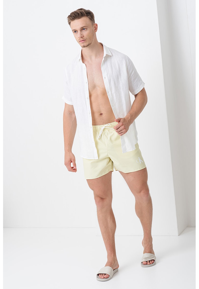 Caracteristici Tip produs: pantaloni scurti Culoare: galben pai Material: poliester Imprimeu: logo Buzunare: laterale Compozitie Exterior: 100% poliester Info model Modelul poarta un produs de marimea M. Marimi model: 191 cm inaltime