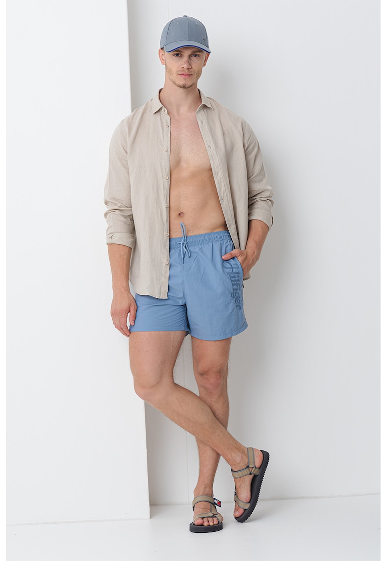 Caracteristici Tip produs: pantaloni scurti Culoare: albastru prafuit Material: poliamida Imprimeu: uni Buzunare: 2 laterale Detalii: snur pentru ajustare in talie Compozitie Exterior: 65% poliamida reciclata