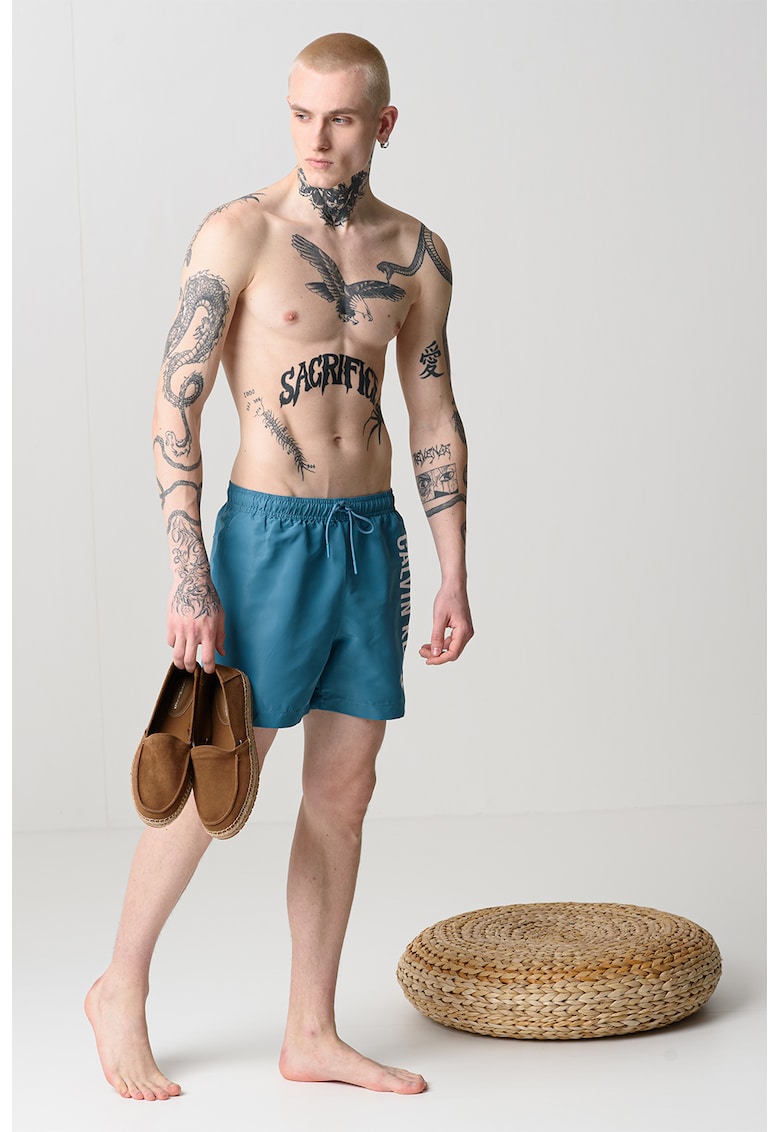 Caracteristici Tip produs: pantaloni scurti Culoare: albastru petrol Material: sintetic Imprimeu: logo Buzunare: laterale