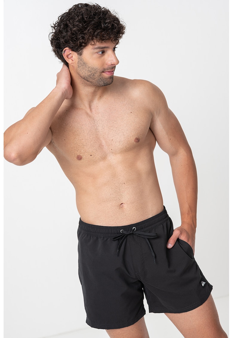 Caracteristici Tip produs: pantaloni scurti Culoare: negru Material: sintetic Imprimeu: uni Buzunare: 2 exterioare laterale Talie: medie Compozitie Exterior: 100% poliester reciclat Info model Modelul poarta un produs de marimea M. Marimi model: 179 cm inaltime