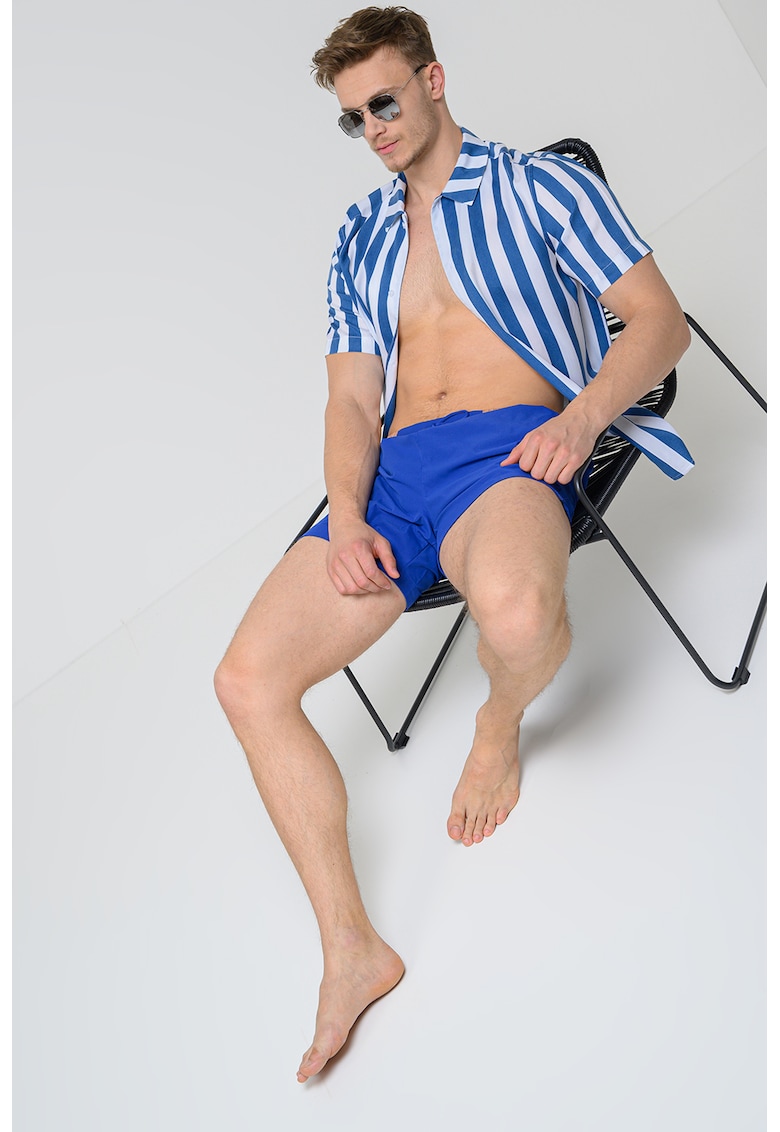 Caracteristici Tip produs: pantaloni scurti Culoare: albastru Material: poliester Imprimeu: uni Talie: regular Compozitie Exterior: 100% poliester Info model Modelul poarta un produs de marimea M. Marimi model: 191 cm inaltime
