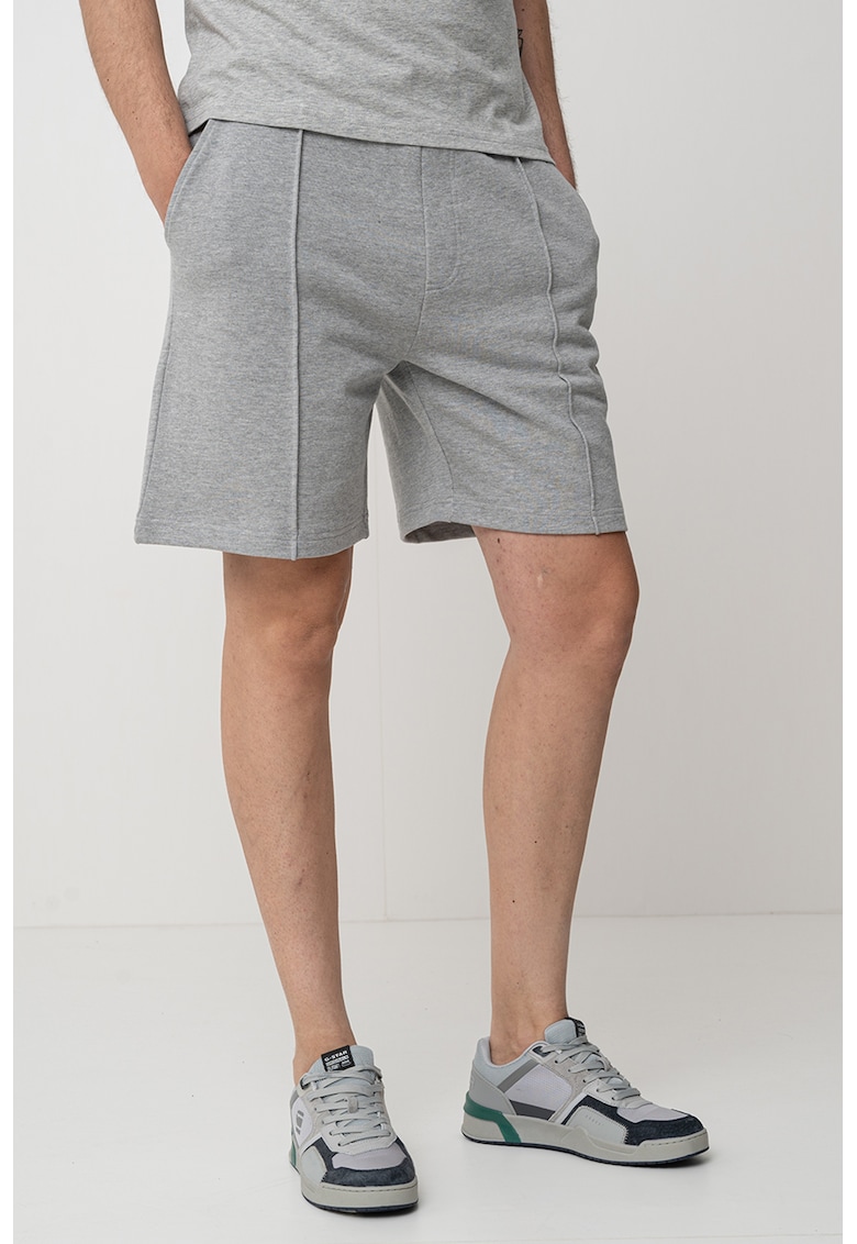Caracteristici Culoare: gri melange Imprimeu: uni Material: bumbac Stil: casual Croiala: regular fit Talie: medie Buzunare: laterale Lungime: scurti Sistem inchidere: fara inchidere Compozitie Exterior: 100% bumbac Info model Modelul poarta un produs de marimea M. Marimi model: 195 cm inaltime