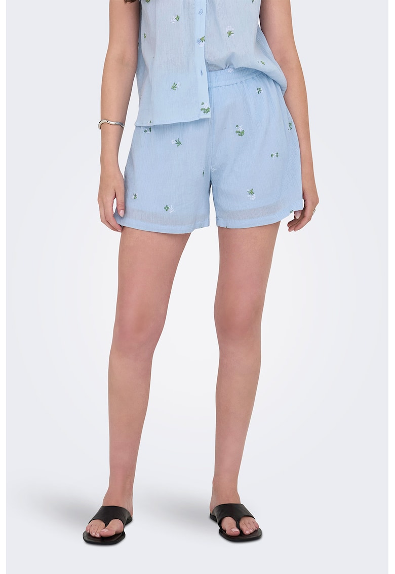 - verde marin Stil: casual Material: bumbac Imprimeu: floral Croiala: regular fit Lungime: scurti Talie: inalta Detalii: talie elastica