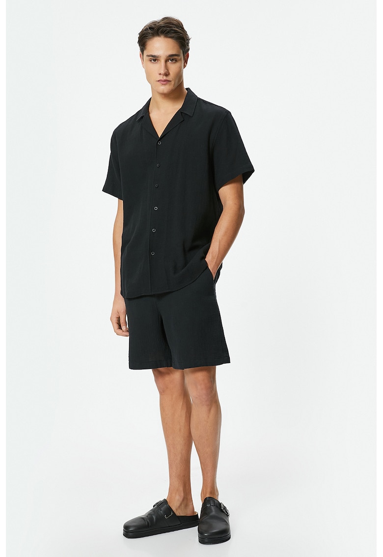 Caracteristici Culoare: negru stins Imprimeu: uni Material: bumbac Stil: casual Croiala: regular fit Talie: medie Buzunare: 2 laterale Lungime: scurti Detalii: snur elastic in talie