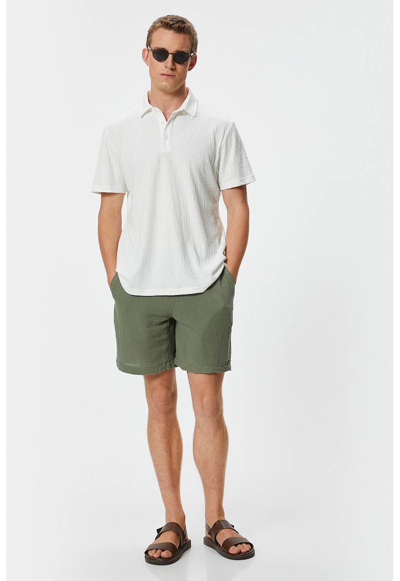 Caracteristici Culoare: verde sparanghel Imprimeu: uni Material: bumbac Stil: casual Croiala: regular fit Talie: medie Buzunare: 2 laterale Lungime: scurti Detalii: snur elastic in talie