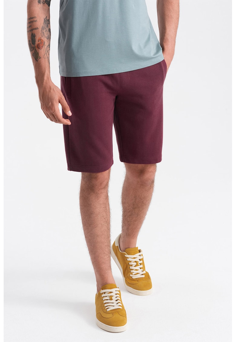 Caracteristici Culoare: visiniu Imprimeu: uni Material: bumbac Stil: casual Croiala: regular fit Talie: medie Buzunare: cu refilet Lungime: scurti Detalii: banda elastica in talie cu snur pentru ajustare Sistem inchidere: fara inchidere Compozitie Exterior: 100% bumbac