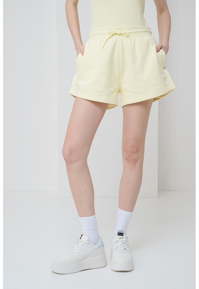 Caracteristici Culoare: galben deschis Stil: casual Material: bumbac Imprimeu: uni Croiala: regular fit Lungime: scurti Talie: inalta Buzunare: laterale Sistem inchidere: fara inchidere Compozitie Exterior: 100% bumbac Info model Modelul poarta un produs de marimea S. Marimi model: 177 cm inaltime