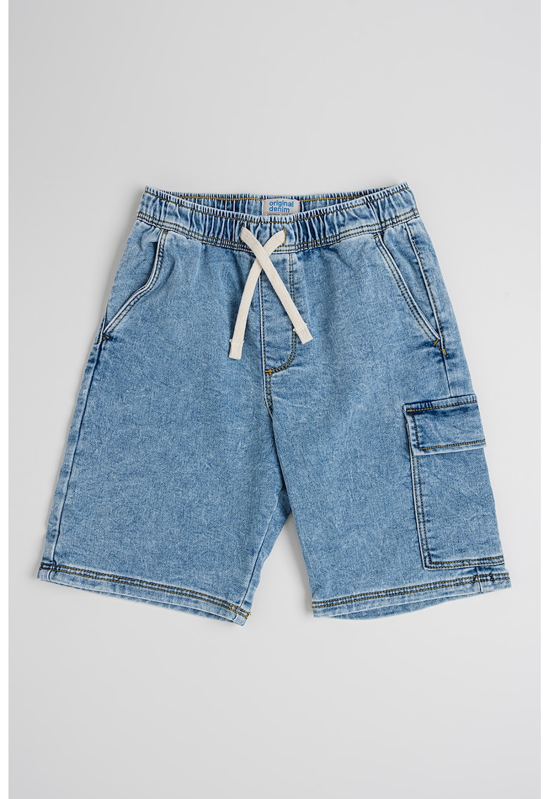 Caracteristici Culoare: albastru lavanda Material: denim Imprimeu: uni Croiala: regular fit Stil: casual Detalii: snur pentru ajustare in talie