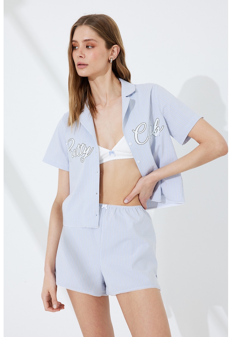 - bumbac Imprimeu: dungi Croiala: regular fit Lungime pantaloni: scurti Sistem inchidere: fara inchidere Compozitie Exterior: 49% poliester