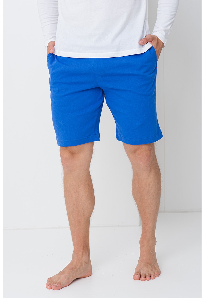 Caracteristici Tip produs: pantaloni de pijama Continut pachet: o pereche de pantaloni scurti Culoare: albastru deschis Imprimeu: uni Material: bumbac Talie: medie Lungime pantaloni: scurti Buzunare: 2 oblice Detalii: banda elastica