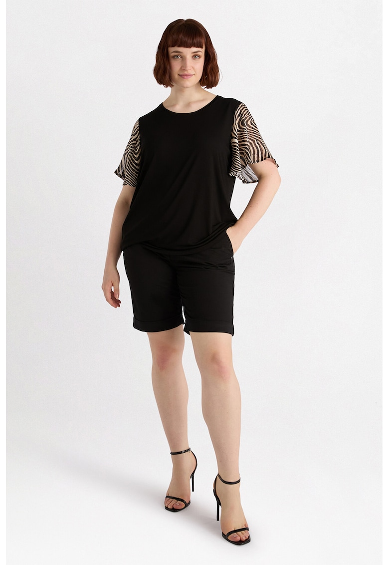 Caracteristici Culoare: negru Stil: casual Material: bumbac Imprimeu: uni Croiala: regular fit Lungime: scurti Talie: inalta Detalii: acest produs se adreseaza femeilor cu forme pline (plus size). Buzunare: 4 Sistem inchidere: fermoar Compozitie Exterior: 97% bumbac
