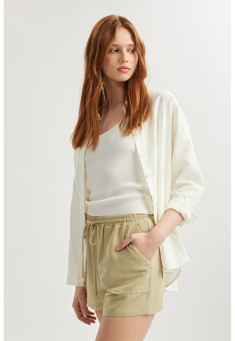 - in Imprimeu: uni Croiala: regular fit Lungime: scurti Talie: medie Buzunare: laterale Sistem inchidere: fara inchidere Compozitie Exterior: 46% viscoza