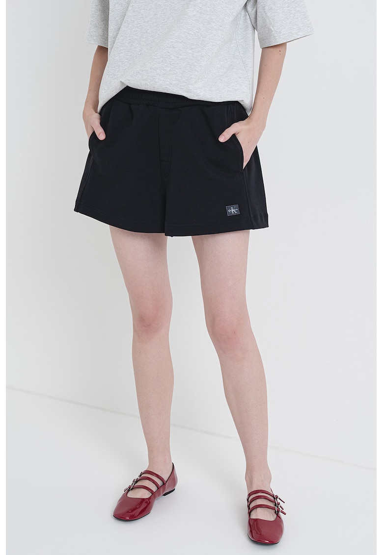 Caracteristici Culoare: negru Stil: casual Material: bumbac Imprimeu: logo Croiala: regular fit Lungime: scurti Talie: medie Buzunare: 2 oblice laterale Compozitie Exterior: 100% bumbac Info model Modelul poarta un produs de marimea S. Marimi model: 177 cm inaltime
