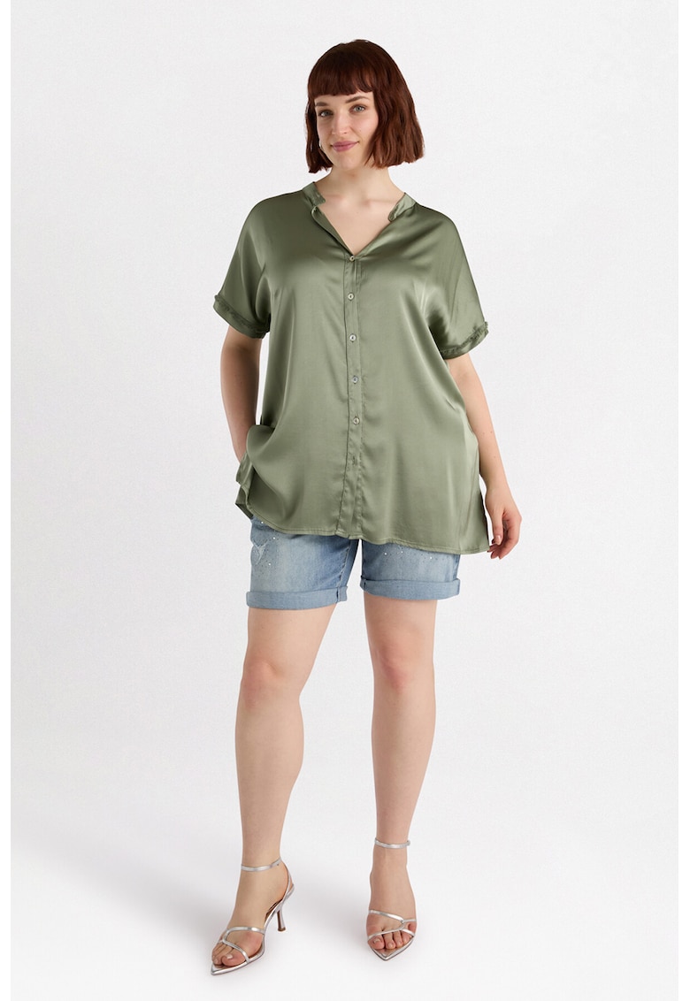 Caracteristici Culoare: albastru pastel Imprimeu: uni Croiala: curvy Material: denim Talie: inalta Lungime: scurti Buzunare: pe partea din fata si pe partea din spate Detalii: acest produs se adreseaza femeilor cu forme pline (plus size). Compozitie Exterior: 76% bumbac