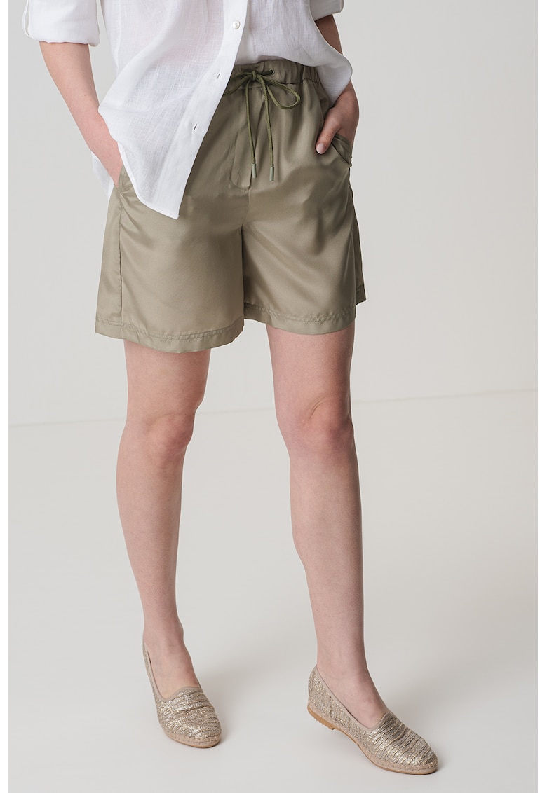 Caracteristici Culoare: verde deschis Stil: casual Material: matase Imprimeu: uni Croiala: regular fit Lungime: scurti Talie: inalta Buzunare: pe partea din fata si pe partea din spate Compozitie Exterior: 100% matase Info model Modelul poarta un produs de marimea S/38 IT. Marimi model: 175 cm inaltime