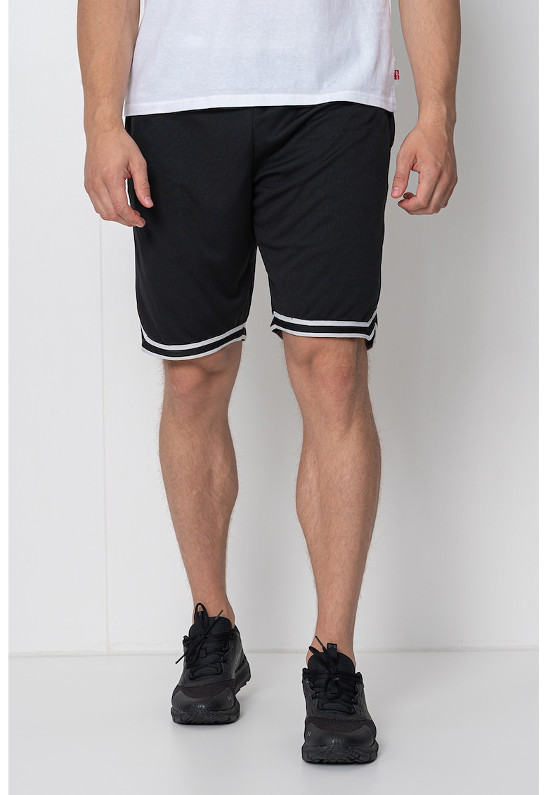 - negru Imprimeu: dungi Material: sintetic Stil: casual Croiala: relaxed fit Talie: medie Buzunare: in cusaturile laterale Lungime: scurti Detalii: snur pentru ajustare si insertie elastica in talie Sistem inchidere: fara inchidere Compozitie Exterior: 100% poliester Info model Modelul poarta un produs de marimea M. Marimi model: 191 cm inaltime