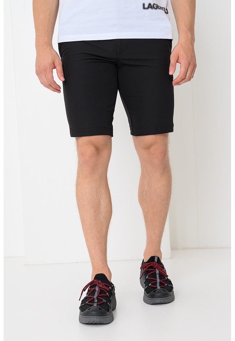 Caracteristici Culoare: negru Imprimeu: uni Material: poliester Stil: casual Croiala: slim fit Talie: medie Buzunare: 2 oblice Lungime: scurti Sistem inchidere: fermoar
