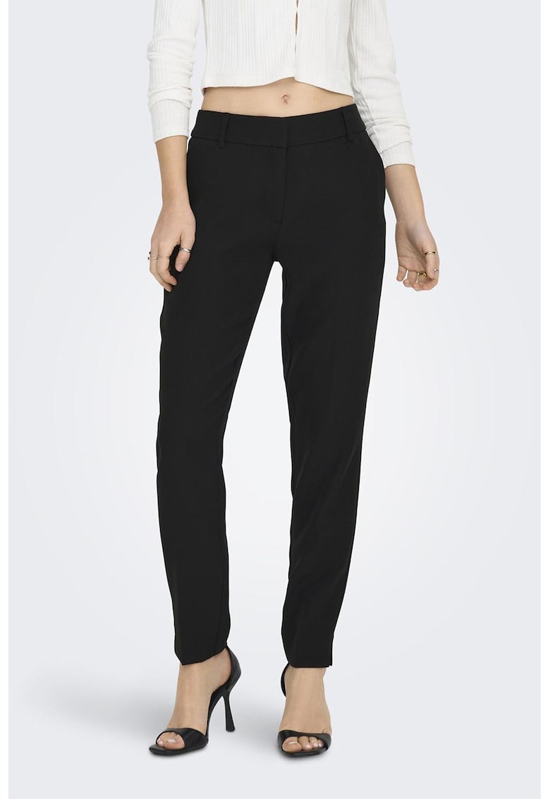 Caracteristici Culoare: negru Stil: elegant Material: sintetic Imprimeu: uni Croiala: slim fit Lungime: lungi Talie: inalta Buzunare: cu refilet pe partea din spate