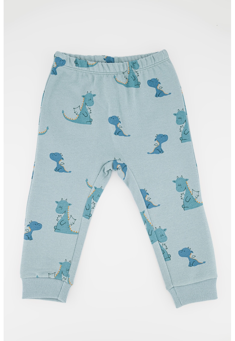 Caracteristici Tip produs: pantaloni lungi Culoare: albastru deschis Material: bumbac Stil: casual Imprimeu: grafic Croiala: regular fit Talie: medie Detalii: talie elastica