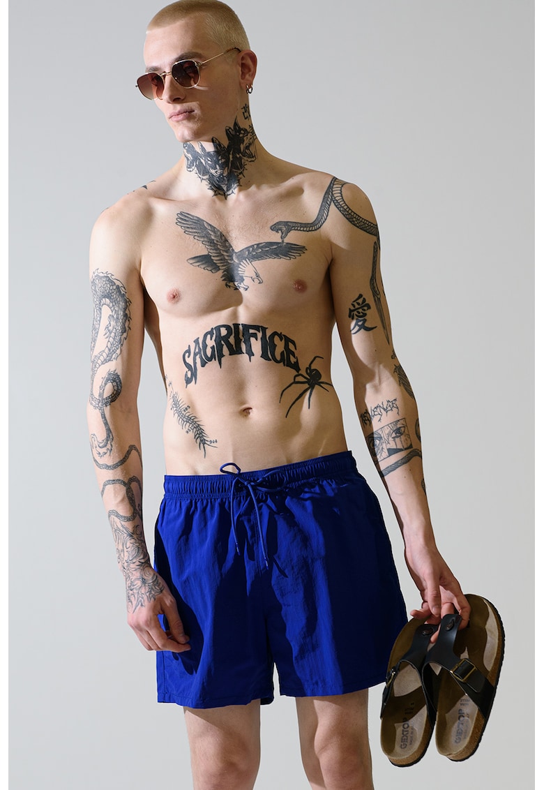 Caracteristici Tip produs: pantaloni scurti Culoare: albastru royal Material: nylon Imprimeu: uni Compozitie Exterior: 100% poliamida reciclata Info model Modelul poarta un produs de marimea L. Marimi model: 188 cm inaltime