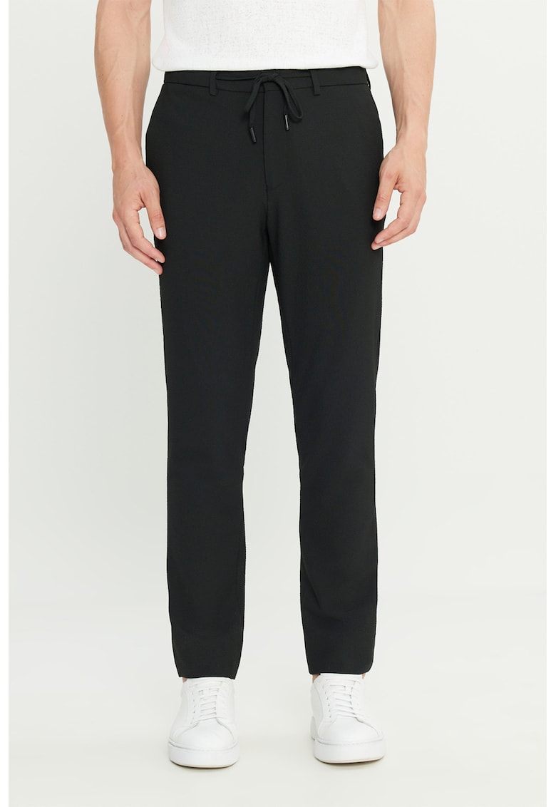 - viscoza Stil: casual Croiala: regular fit Talie: medie Buzunare: 2 laterale Lungime: lungi Detalii: talie ajustabila Compozitie Exterior: 64% poliester