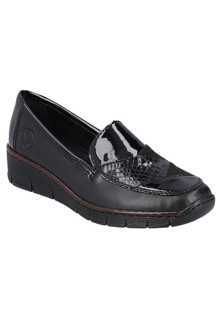 Caracteristici Tip: cu toc Material: piele naturala Culoare: negru Imprimeu: cu model Stil: casual Varf: rotund Tip toc: cubanez Tip talpa: flatform Tehnologie: anti stres Detalii: design slip-on Informatii suplimentare: comozi Sistem inchidere: fara inchidere Linie Brand: rieker Compozitie Partea superioara: piele Material interior: talpa din piele Material talpa: sintetic Dimensiuni Inaltime toc: 3.7 cm Platforma fata: 1 -5 cm Platforma spate: 3.7 cm Inaltime talpa: 1.5 cm