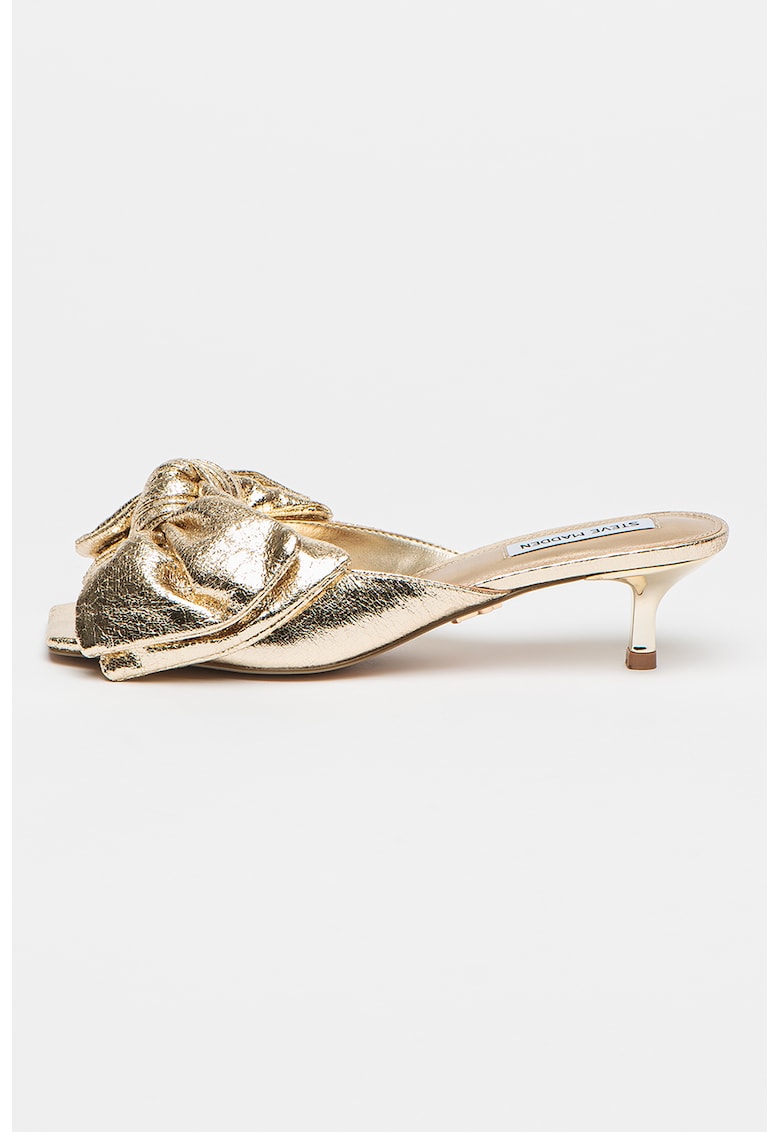 Caracteristici Culoare: auriu Material: piele ecologica Stil: casual Imprimeu: uni Varf: patrat Tip toc: kitten Detalii: aspect metalizat Compozitie Partea superioara: material sintetic Material interior: sintetic Material talpa: alte materiale Dimensiuni Inaltime toc: 4.5 cm