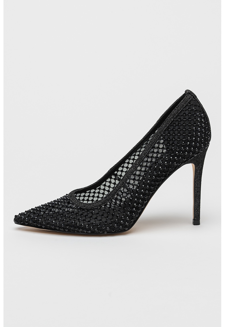 - sintetic Culoare: negru Imprimeu: uni Stil: elegant Varf: ascutit Tip toc: stiletto Detalii: strasuri Sistem inchidere: fara inchidere Compozitie Partea superioara: alte materiale