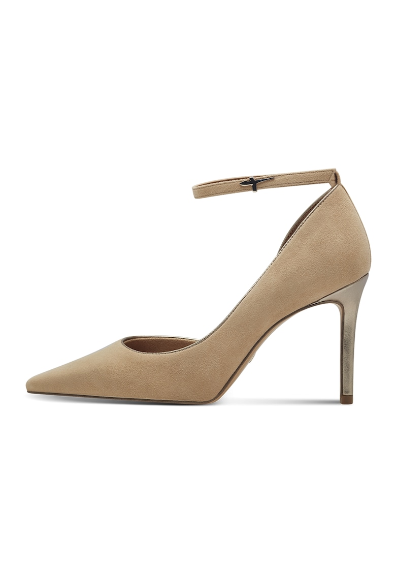 - piele ecologica Culoare: bej Imprimeu: uni Stil: casual Varf: ascutit Tip toc: clasic Detalii: bareta pe glezna Sistem inchidere: catarama Compozitie Partea superioara: piele intoarsa