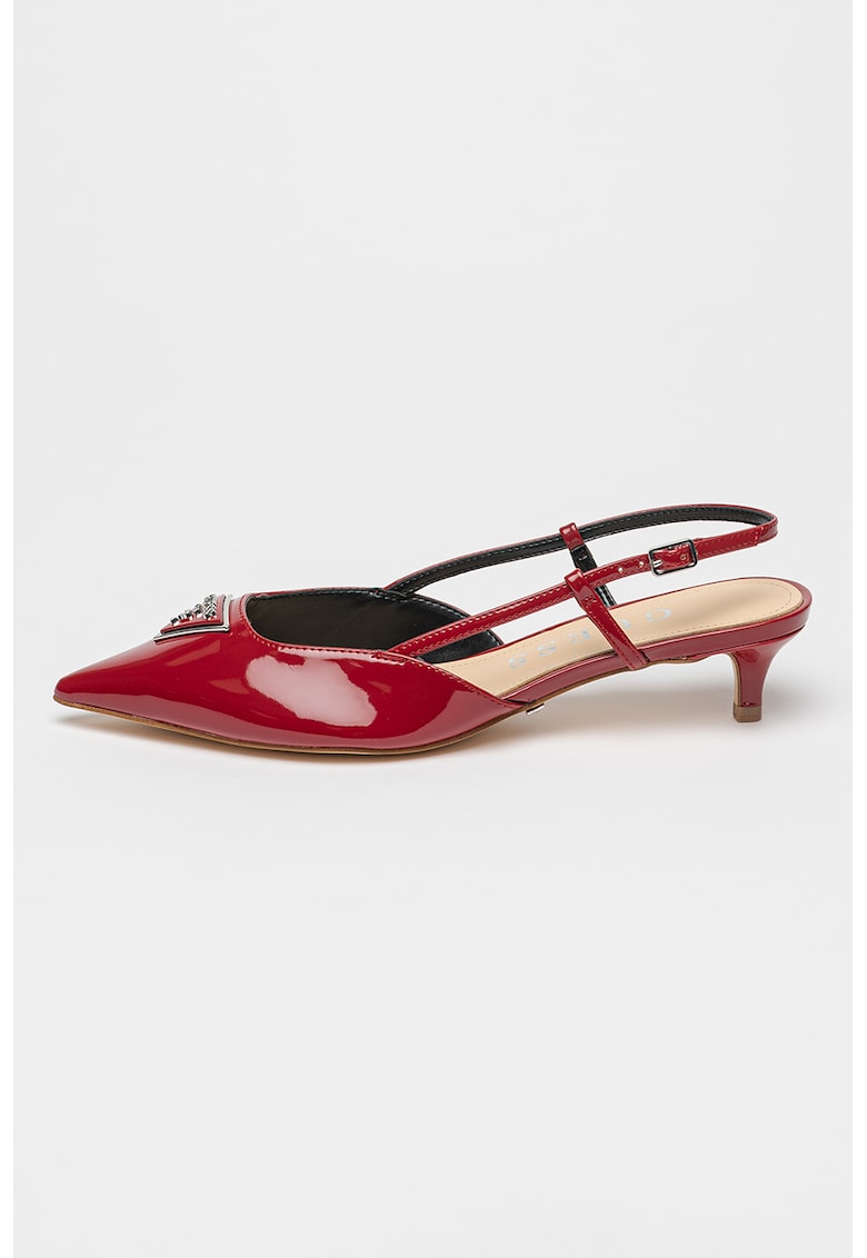 Caracteristici Tip: cu toc Material: piele ecologica Culoare: rosu inchis Imprimeu: uni Stil: casual Varf: ascutit Tip toc: kitten Detalii: aspect lacuit Sistem inchidere: catarama Compozitie Partea superioara: alte materiale Material interior: alte materiale Material talpa: alte materiale Dimensiuni Inaltime toc: 4 cm