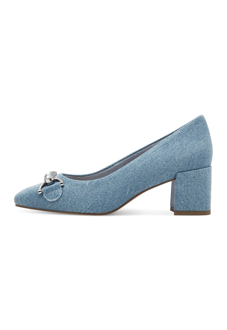 - denim Culoare: albastru pastel Imprimeu: uni Stil: elegant Varf: patrat Tip toc: masiv Detalii: detaliu cu strasuri Sistem inchidere: fara inchidere Compozitie Partea superioara: textil Material interior: alte materiale
