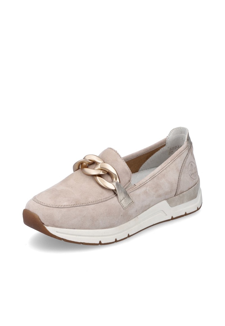 Caracteristici Tip: cu talpa joasa Material: piele naturala Culoare: bej Imprimeu: uni Stil: casual Varf: rotund Tip toc: clasic Tip talpa: plata Tehnologie: confort sporit Detalii: comozi Informatii suplimentare: comozi Sistem inchidere: fara inchidere Linie Brand: rieker Compozitie Material talpa: alte materiale Dimensiuni Inaltime toc: 0 cm