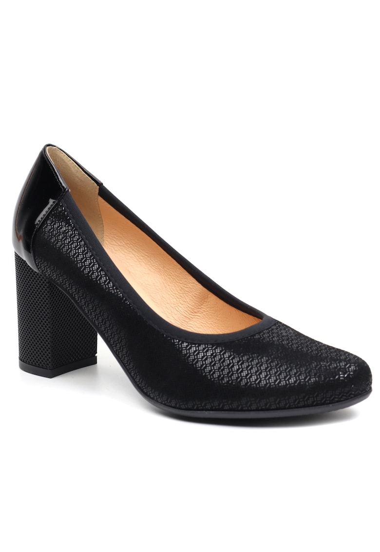 Caracteristici Tip: cu toc Material: piele naturala Culoare: negru Imprimeu: uni Stil: elegant Varf: rotund Tip toc: clasic Tip talpa: plata Tehnologie: confort sporit Detalii: comozi Informatii suplimentare: comozi Sistem inchidere: fara inchidere Compozitie Partea superioara: piele naturala Material interior: alte materiale Material talpa: alte materiale Dimensiuni Inaltime toc: 7 cm